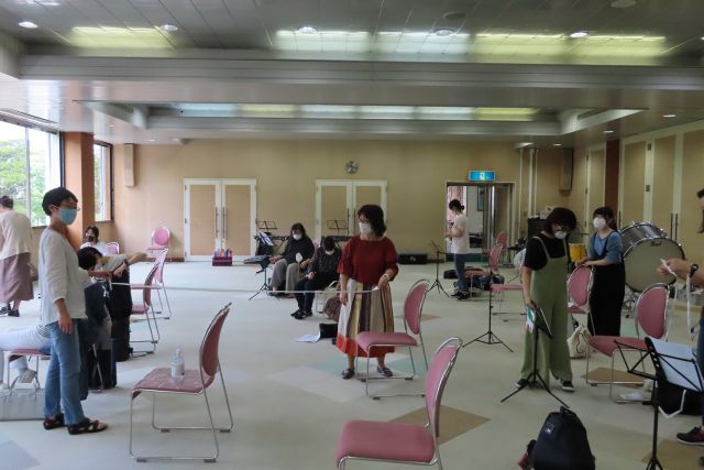 団員同士距離のある練習は、いつもと音の聞こえ方が変わり、違和感を感じたとともに新しい発見もあった団員さんも多かったんではないでしょうか。