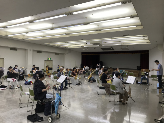 練習再開後は、いつもと違う練習場所、いつもより距離をとっての練習のため、音の響きや聞こえ方がいつもと異なるので、苦戦しながらの練習です。(周りの音を聞くと遅れる。ホントやっかいです)