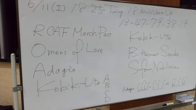 ■参加: 計 33 名 指揮者:1、フルート: 3、オーボエ/ファゴット: 1、クラリネット: 7、サックス: 3、トランペット: 3、ホルン: 2、トロンボーン: 4、ユーフォニアム: 3、 テューバ: 0、パーカッション: 5、String Bass: 1