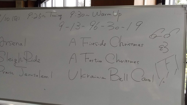 クリスマス曲を練習して少しは涼しい気分になるかと思いましたが、そんなことはなく熱のこもった熱い練習でした。