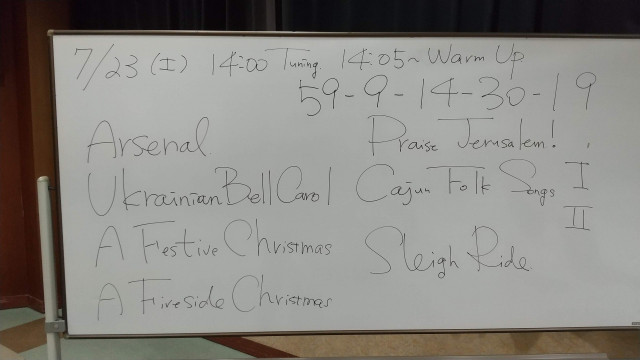■参加: 計 23 名 指揮者:1、フルート: 3、オーボエ/ファゴット: 0、クラリネット: 4、サックス: 3、トランペット: 2、ホルン: 1、トロンボーン: 4、ユーフォニアム: 0、 テューバ: 1、パーカッション: 3、String Bass: 1