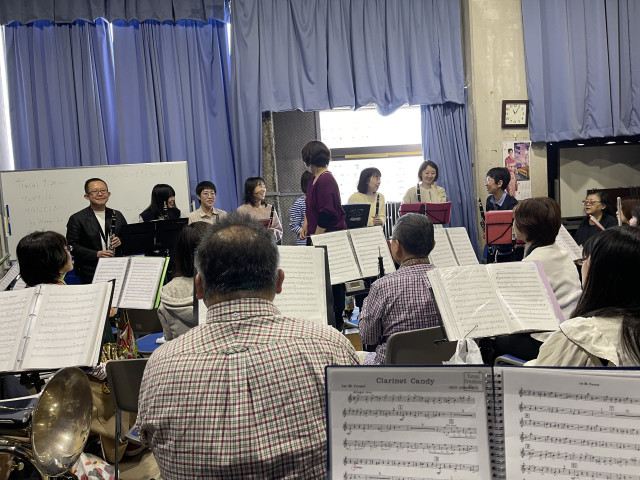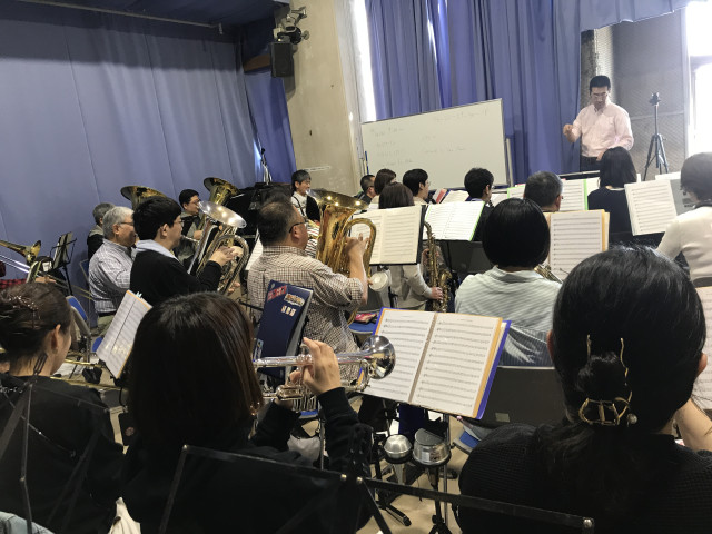 ■参加: 計40名 指揮者:1、フルート: 3、オーボエ/ファゴット: 2、クラリネット: 8、サックス: 5、トランペット: 6、ホルン: 4(うち見学者1)、トロンボーン: 2、ユーフォニアム: 3、 テューバ: 2、パーカッション: 4、String Bass: 0