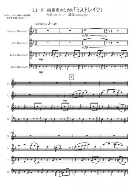サンプル4(「リコーダー四重奏のための「ミストレイク」」(kakiupho))