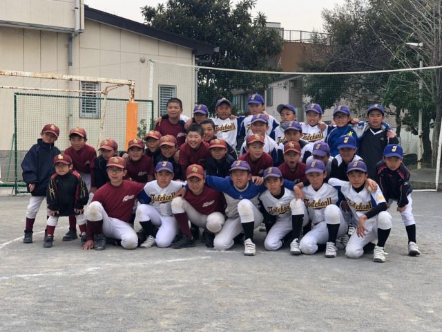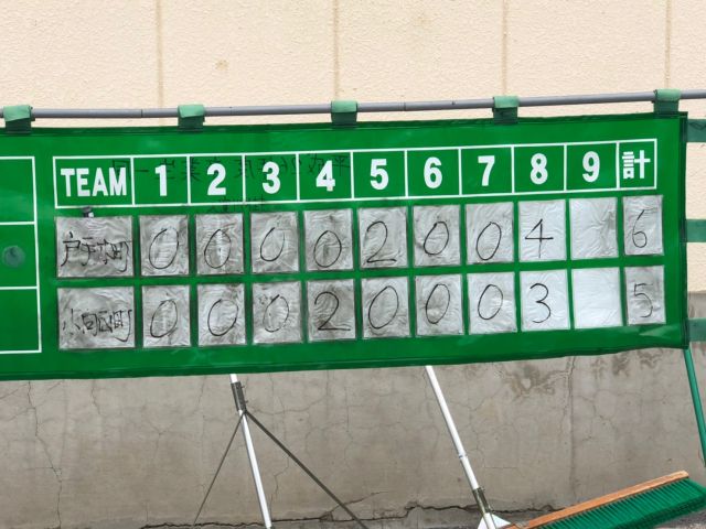 7回で決着つかず、延長タイブレークでロータリー杯の再現です。❕打順は二番レイヤのタイムリーヒットから一挙に4点を取ったものの、その裏に守備のミスもありながら、3点を返されます😞💦なおも1アウト1,2塁一打同点のピンチ❗でもドラマが残ってました。センターのシュンエイがライナー性の打球をギリギリのところでキャッチ❕2塁送球ダブルプレーで試合終了❕❕