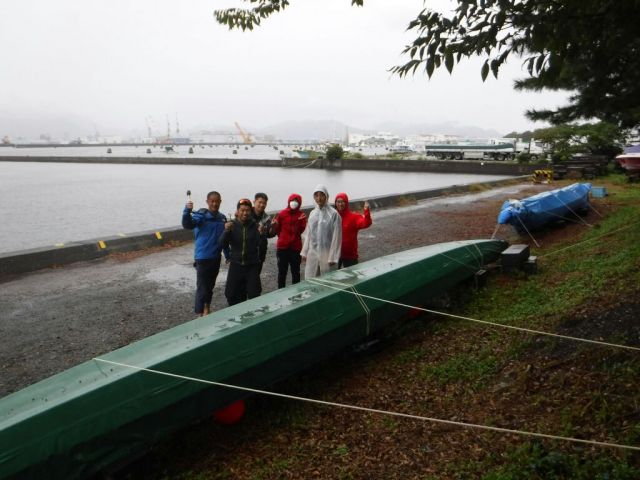 台風接近のため、第8回静岡ドラゴンボート大会ツナカップは中止となり、早朝から艇の固縛作業実施しました。