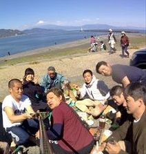 漕いだ後は海と富士山を眺めながらのBBQランチで親睦を深めました。