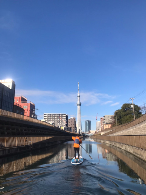 12月4日、スカイツリーを眺めながらのんびりSUP。