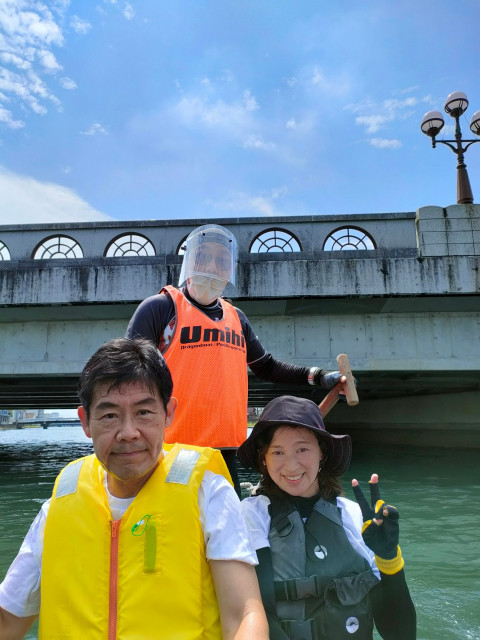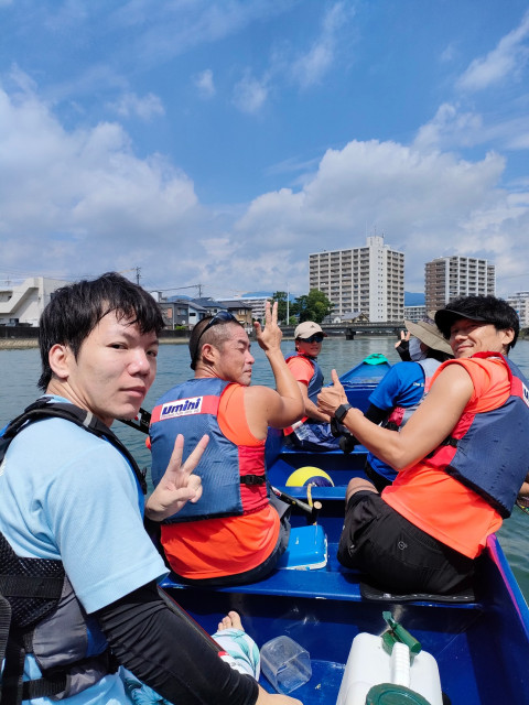 ドラゴンボート日和の中、チームしぞぉかの皆さんと清水港内から巴川を遡り浜田親水公園折り返しの1時間半のコースをパドリング。