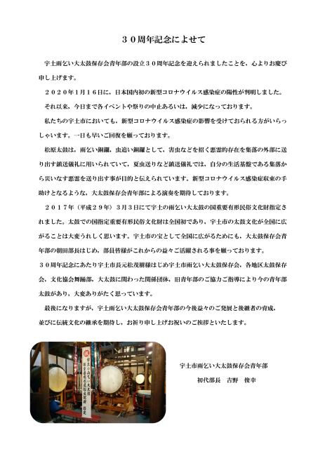 デジタル記念誌「宇土雨乞い大太鼓保存会青年部 結成30周年」