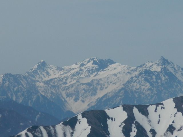 頂上からは360度のパノラマ。北アルプスの多くの名峰や八ケ岳、南アルプス、富士山、中央アルプスなども見渡せます。