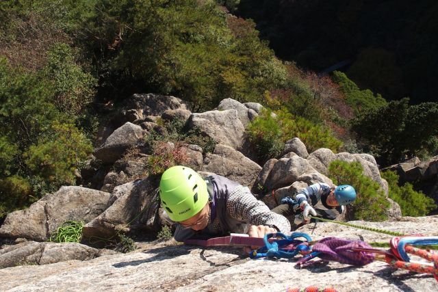 アブミを使うFujiChanさんとビレイをがんばるチュー吉さん