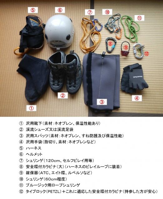 沢登り教室参加者の方へ(基本個人装備一覧)