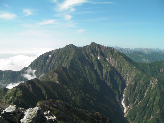 (キレットと鹿島槍。その奥に槍がかすかに)