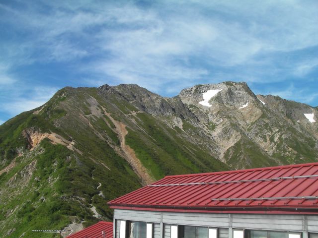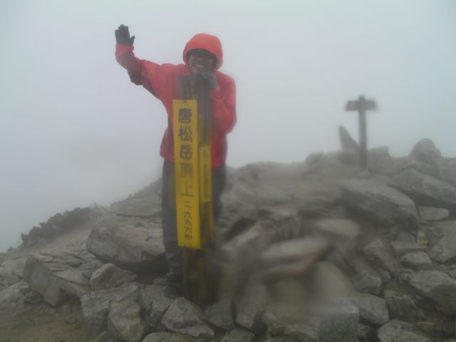 濡がひどく、また装備が不十分(軍手、下着・中間着が化繊)ということで、軽い低体温となったため、唐松岳のピストンと牛首の出だしの鎖場の偵察にとどめ、ここで幕営(1人1000円)。