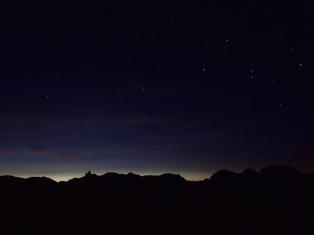 見えるでしょうか、穂高の上にオリオン座