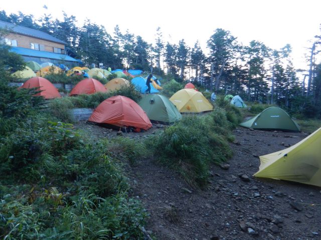 写真は、日本で一番高い峠(と書いていました)三伏峠のテント場で、19日幕営。