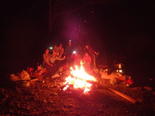 テラさんとキツネさんが手配してくださった薪での焚き火を囲み、三田牛のバーベキューをいただきました。ワインにビールに焼酎にと、いろんなお酒を飲み交わしながら、今年の山や、来年の山の話で盛り上がりました。3日は雨の心配もなくとても暖かくて楽しい納山祭となりました。