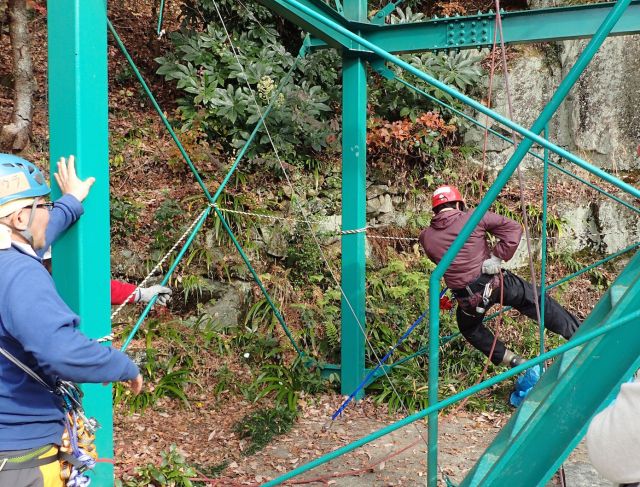 百丈やぐらでの確保訓練です。70キロの落下の衝撃はものすごい。私ははじめてだったのですが、他のメンバーも初めての人が多かったです。とても有意義な経験でした。ロープワーク、一つ一つの器具の使い方、力のかかる向きの予測、セルフビレイの大切さ、何から何まで貴重な学びとなりました。しっかり復習して流れをきっちり自分のものしていきたいと思います。
