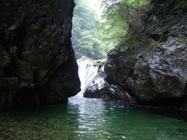 笠捨谷出合付近で「もう少し先で切り上げよう」と余裕で飛び込み大会をしていたのですが、そのあとの狼返しの滝でも微妙な下り、登り。最後の最後までやってくれました。