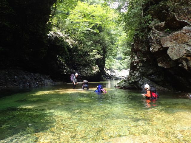 リーダーにトップで登ってもらってロープを出してもらっているのですが、なぜかこの芦廼瀬は「みんなで登った」「パーティーで遡行した」「全員でやりきった」感が半端ではありません。無事全員が車に着いた時のみんなの充実した顔、今思い出しても感動でうるうるしてきます。