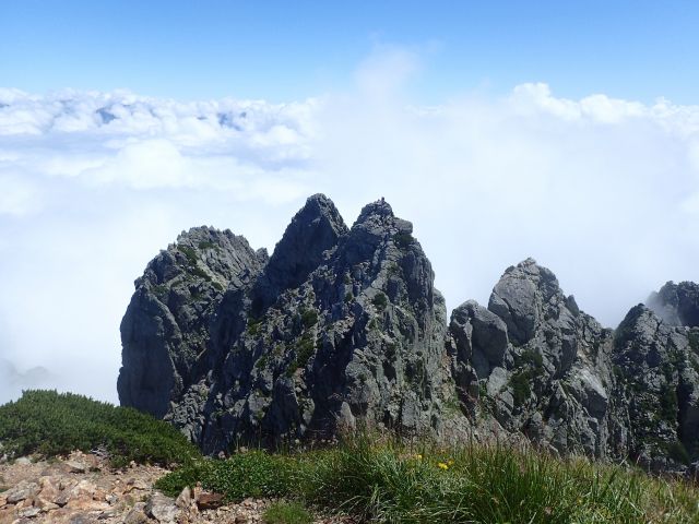 北方稜線を歩くにあたって、大切な点は何かと問われれば、1に天候、2に天候、3,4がなくて5に体力、でしょうか。ルートファインディングが大切、といってもガスで見えなかったらどうしようもありません。今回は本当にラッキーでした。