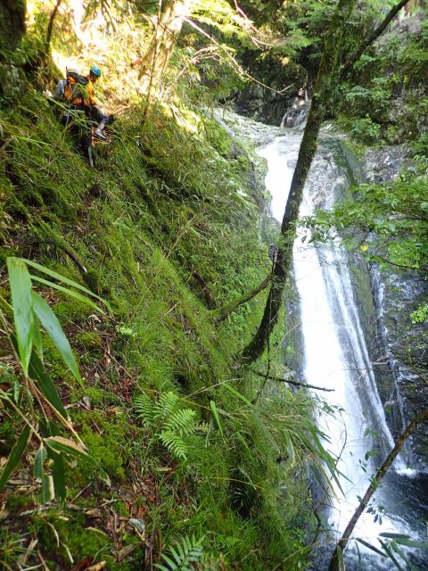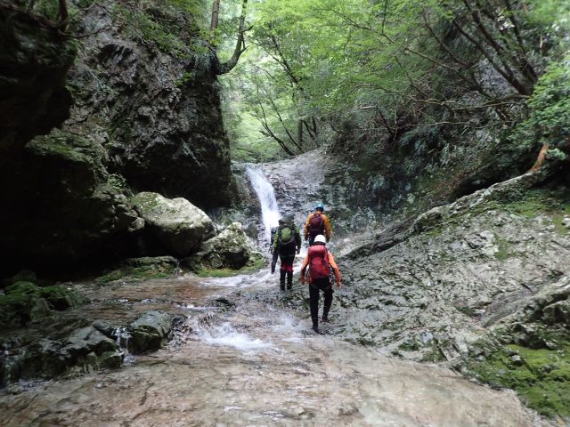 参考タイム:登山口・出発(7:00)—15m直瀑(9:00)—枝又谷(9:45)—不動滝(10:10)—20mの岩壁(13:00遡行打ち切り)—登山道(13:25)—登山口(14:05)