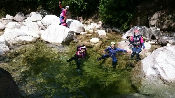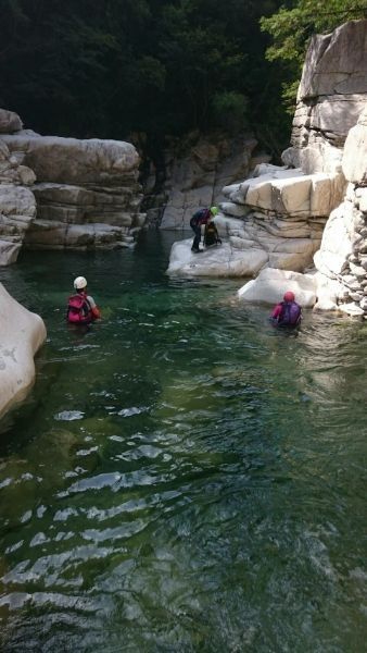 赤坂谷は2年連続で台風等の影響で行けませんでしたが、今年は絶好の天候で花崗岩の白い造形美と清流の太陽の輝きを楽しみながら遡行でき、最高の1日をでした。遡行は、仙香谷出合、赤坂谷、ツメカリ谷への移動、ツメカリ谷、神崎川本流の下降と変化の富んだ遡行を楽しむことが出来、納涼ができました。先週、岐阜県で豪雨があったので、その影響がないか下見に行きました。その結果、神崎川周辺では豪雨がなく、その後1週間雨もなく安心して遡行できました。下見を終えて神崎橋で赤坂谷~ツメカリ谷遡行をしている2人を待っている人と話をし、朝6時に出て午後5時になってもまだ帰らないと心配されていました。私達は5人パーティーでしたが全員、怪我もなく作成した計画書の時間内に帰って来れて良かったです。