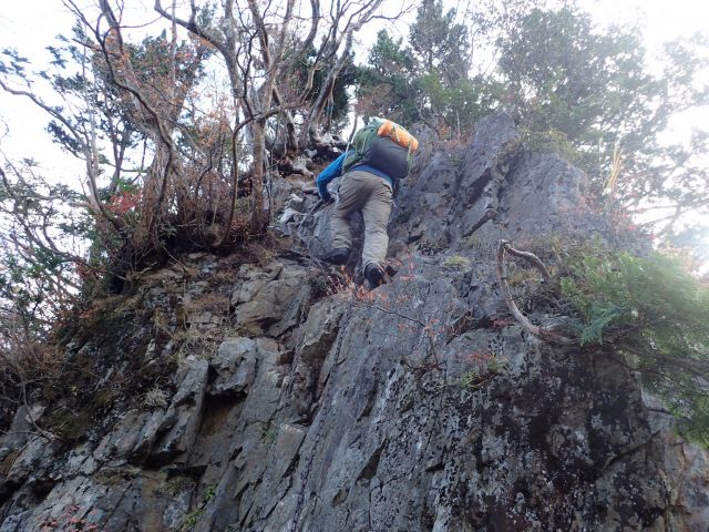 さあ二日目です。風は朝から強かったですが天気はまずまずです。まずは前回へばって何回も木かげで休んだ笠捨山への道を難なくクリヤ。今回の最高地点です。そして倒木に悩まされながらも地蔵岳へ。上り下りとも注意が必要な難所ですがここも無事通過。