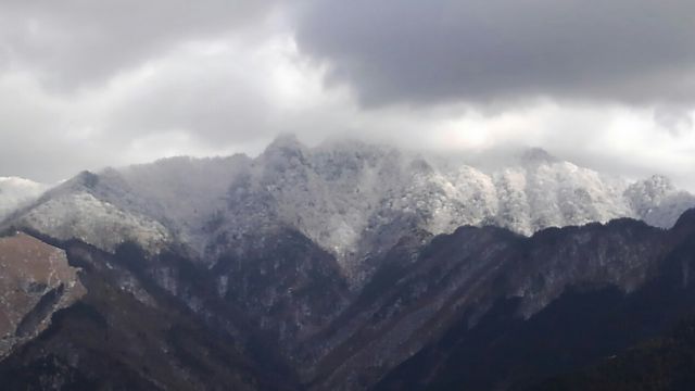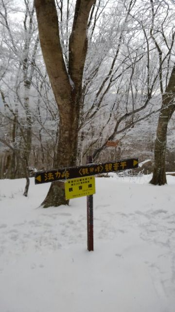 霧氷は観音峰山頂に僅かに着いていました。