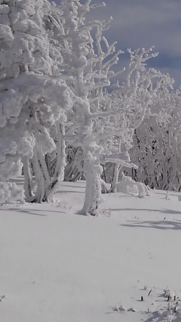 1月6日夜発~7日 Lスマイル・一般Sさん 参考タイム 清浄大橋8:10~8:40一本松茶屋~9:56洞辻茶屋~11:20西覗岩~12:00山上ヶ岳12:30~13:17洞辻茶屋~14:10一本松茶屋~14:40清浄大橋 悪天候後の晴天を期待して行って来ました。急遽ラッセル要員、Sさん参加で楽しみです🎵植林から稜線の洞辻茶屋に出ると素晴らしい樹氷です。西覗岩から洞川を俯瞰、大日・稲村ヶ岳を望み大峰山寺を経て山頂へ。八経ヶ岳・釈迦ヶ岳、その左手には熊野灘の海面が望めました。この日は何パーティーも入山しておりトレースがありました。