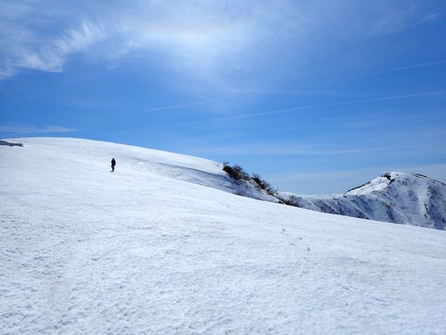 奥越の経ヶ岳に春の雪山ハイキングに行ってきました。白山や荒島岳などを眺めながらの快適な稜線歩きを楽しみました。