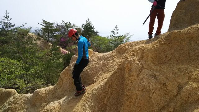 万物相での恒例の急斜面バーンをみたてたアイゼン歩行練習