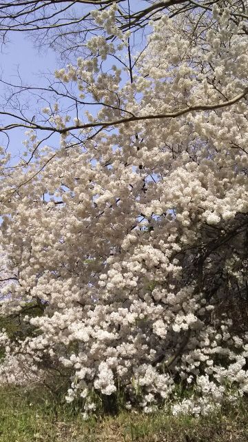 保久良神社の斜面で倒れながらも見事な花を咲かしていた桜