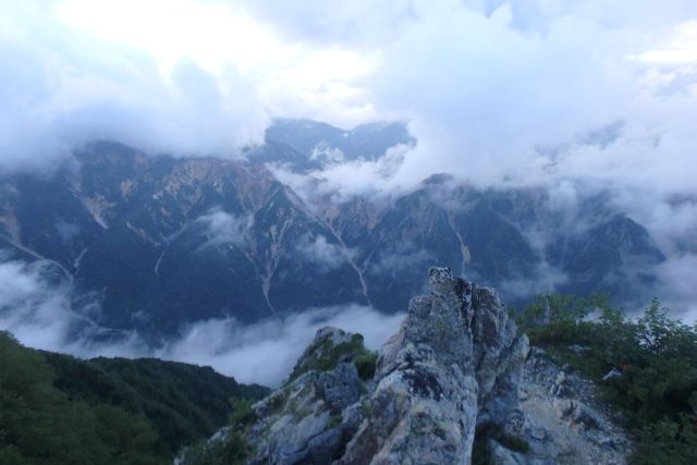 ☆彡硫黄岳が見える。ガスが生き物のように漂う