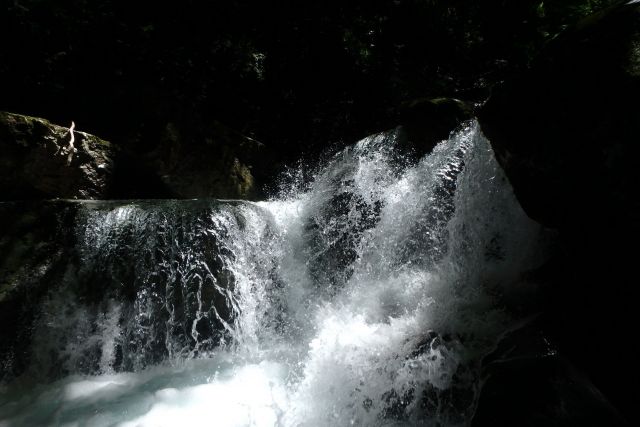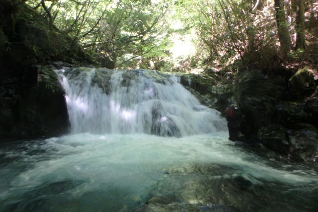 遡行して行くと次から次へと滝が現れ、ウォータースライディングに良さそうなナメも沢山ありました。が、今回は水量が多すぎて遊ぶことができない。