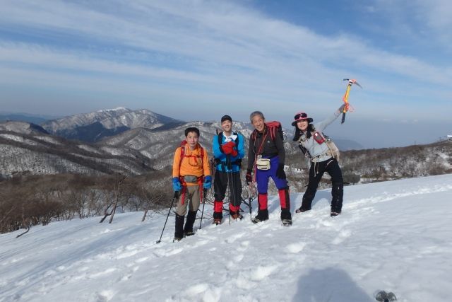 例年、蓬莱山手前の道が藪漕ぎ&踏み抜き地獄やったんですが、今回は藪は雪で埋まっており、雪もしっかりと締まっているので、全く苦痛なく歩くことが出来た。