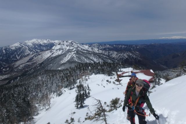西穂山荘より丸山までは、なんてことない快適な登り。穂高岳・乗鞍岳・笠ヶ岳・霞沢・南アルプス・白山を眺めながら高度を上げていく。