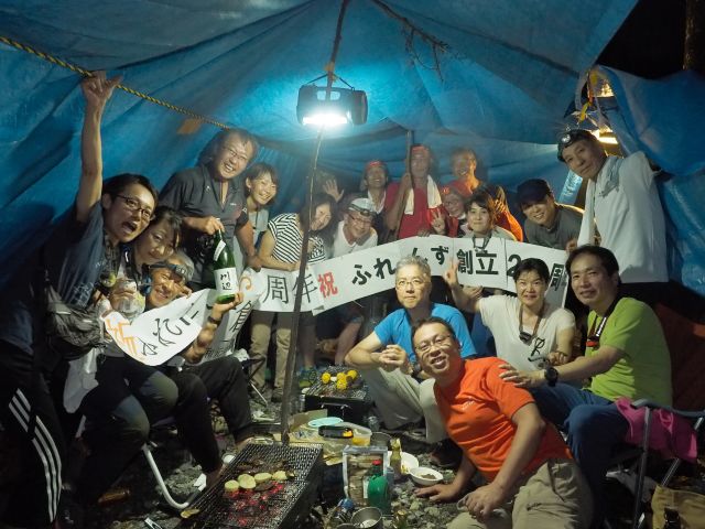 山の会ふれんずが設立して今年でまる20年が経ちました。これを記念して、北股川河原で記念行事(焼肉パーティ)を開催しました。この日は、ふれんず創立時のメンバーから今年入会したばかりのメンバーまで、また年齢も30代から70代までの老若男女、総勢18名が集まりました。