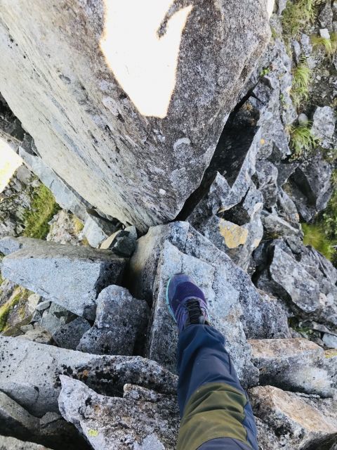 両側が切れ落ちていますが、焦らずしっかりホールドを握って進んで行きます。