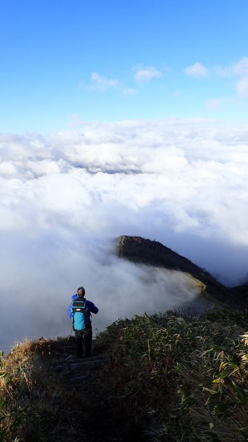 「朝食の食材紛失事件」で予定より30分遅れの7:30に小屋出発。見事な雲海を見ながら下山です♪
