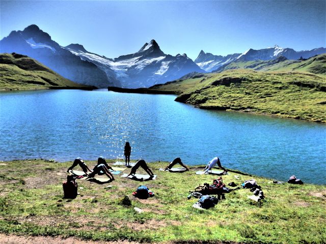 ◆バッハアルプゼー湖畔でヨガを楽しむ人達