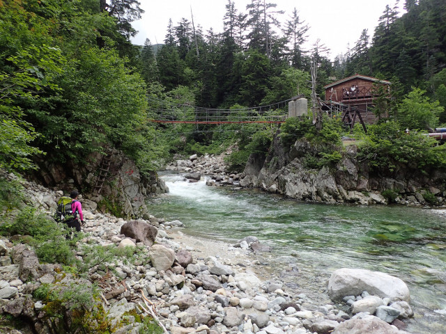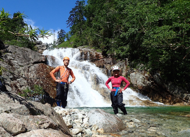 水量は多い気もしますがそうでもないような。思っていたほど荒れていません。小屋の人に聞くと「今朝は濁流で無理でしたけど、明日は行けるでしょう」とのことヤッター。気合を入れ直ししっかり沢の準備、防水対策。楽しみです。