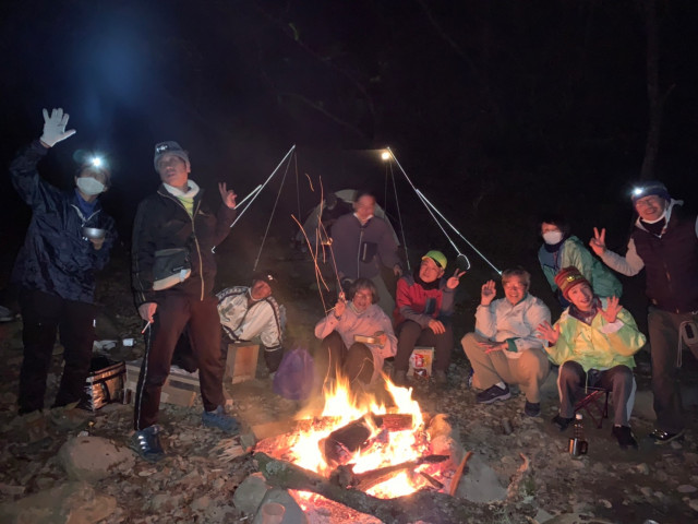 山の会ふれんずは、毎年12月の第一土曜日に百丈河原にて納山祭(山屋の忘年会)を開催しています。昨年は、新型コロナ感染症拡大の影響で急遽中止したので、今回2年ぶりの開催となりました。