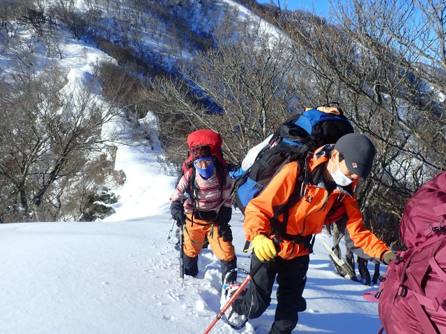 1/9(日) 9:40JR比良駅→9:55イン谷口→10:10-25駐車場前→10:40大山口→11:40-50カモシカ台→13:15-25北比良峠→13:35-50八淵谷分岐→14:55カラ岳→15:20釈迦岳(テント泊)
