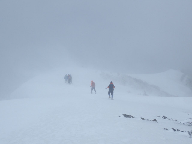 山頂では強風で全く何も見えず、立っているのがやっとこな状態なので、そのまま通過して足速に下山しました。