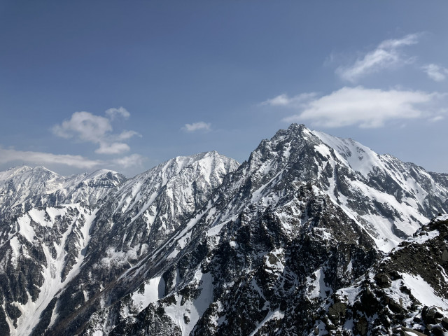 西穂高岳からジャンダルム、奥穂高岳へと続く稜線を眺めて