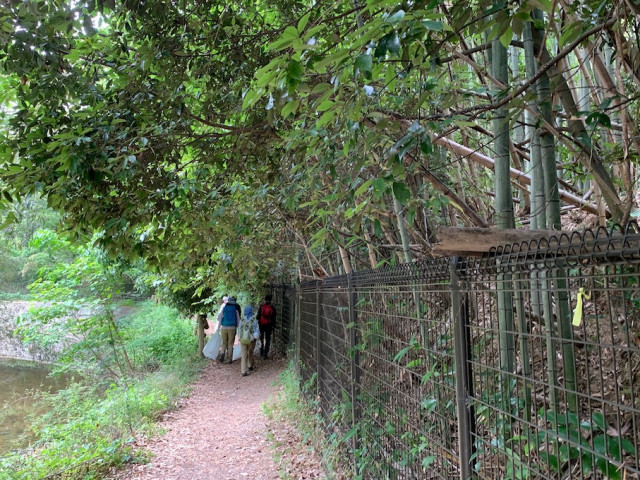コースは京阪私市駅スタートでかわぞいの路からピトンの小屋へ。さえずりの路を通ってつつじの小路とさえずりの路に別れ、やまびこ広場で合流して星のブランコを通ってピトンの小屋に戻るというものでした。
