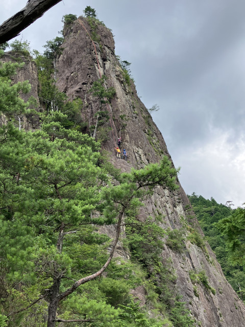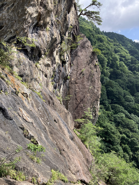 前日の雨でかクラックが濡れていたのと、ピンがほとんどないためランナウトし、かなり怖かったです。3番のカムでもギリギリ、4番以上が必要だと思いました。