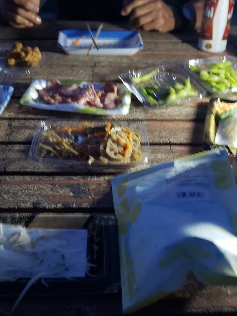 三人共、目の前のニンジンならぬビール。R494号黒森峠を経て川内IC近くのスーパーで食材・ビール買い入れて。ふるさと交流館さくらの湯(500円、お薦め湯)入浴。某河川敷公園で宴会、たわいない話しで盛り上がり、月を見上げながら芝生の上でごろ寝。