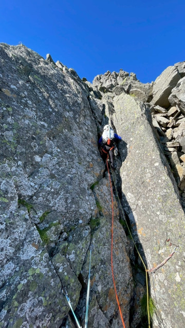 2P(Jさんリード)…右側のチムニーを登る。岩が安定しないため注意。